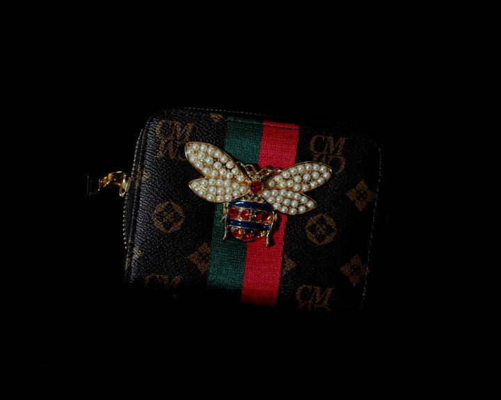 Elevate your style with the Bee Wallet Mini, featuring intricate pearl accents and vibrant red rhinestones that capture attention. This compact, designer-inspired wallet offers the perfect blend of elegance and practicality, fitting seamlessly into your daily routine while making a bold statement. Ideal for those who appreciate detailed craftsmanship and standout accessories.