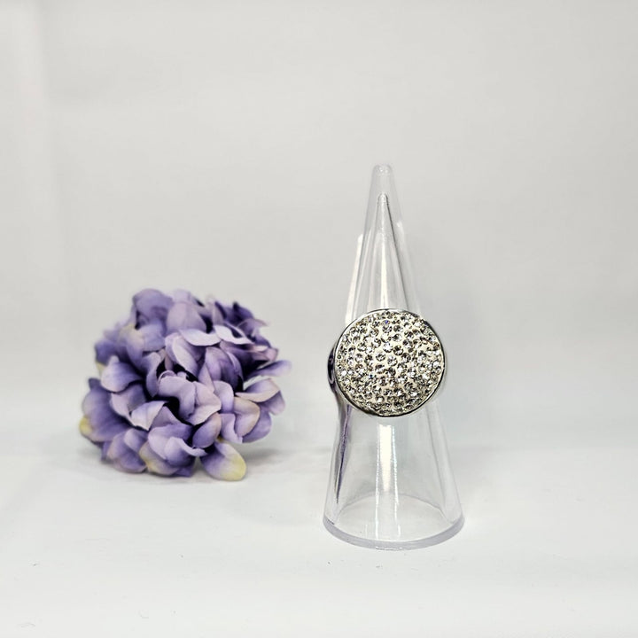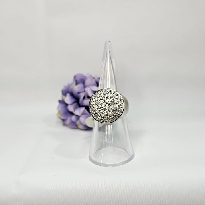 Elevate your style with this bold stainless steel ring, designed exclusively in size 6. Featuring a distinctive half-ball shape adorned with sparkling rhinestones, it delivers a striking blend of modern edge and subtle glamour. Durable and eye-catching, this ring is perfect for adding a confident statement to any outfit.