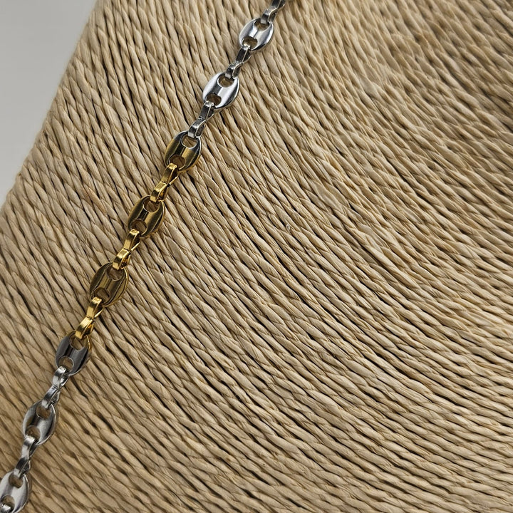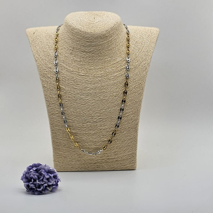 Elevate your style with the Gucci Link Chain Necklace for men. Crafted from premium two-tone stainless steel in striking gold and silver, this necklace combines durability with bold sophistication. Its versatile design seamlessly complements both casual and formal looks, making it a timeless accessory that enhances your confident presence.