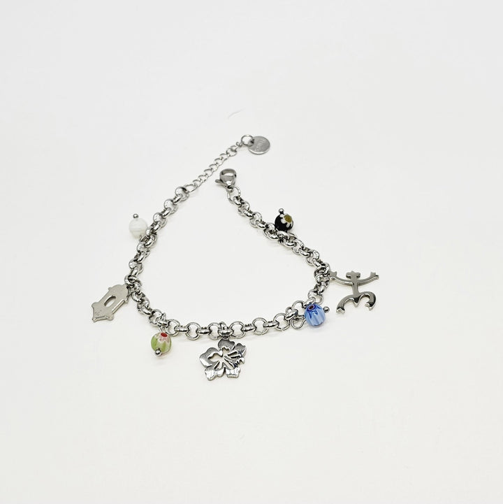 Elevate your style with the La Garita Bracelet crafted from durable stainless steel in a sleek silver finish. Featuring charming tokens inspired by Puerto Rican heritage—the iconic La Garita, the vibrant Flor de Maga, intricate Jeroglifos, and delicate beads—this bracelet beautifully blends elegance with cultural pride. Perfect for adding a meaningful statement to any outfit, it offers both lasting shine and unique artistry.