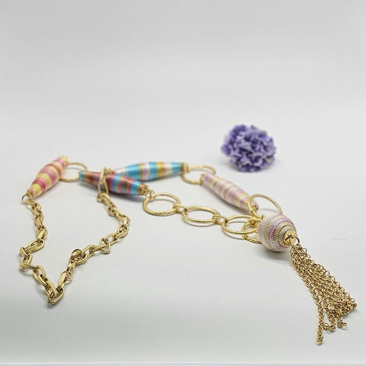 Elevate your style with the Pastels Turkish Necklace, featuring delicate pastel threads woven by hand for a unique, artisanal touch. This gold-plated necklace is adorned with a stunning tassel that adds movement and charm to any outfit. Perfect for those who appreciate craftsmanship and subtle color, it brings a soft, elegant finish to your look.