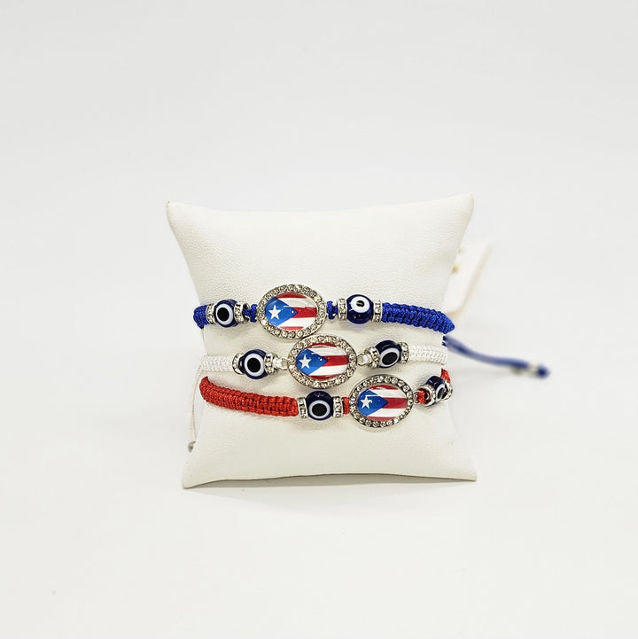 Celebrate your Puerto Rican pride with this elegant thread bracelet, featuring layered strands in vibrant blue, red, and white. Accented with shimmering zirconia, it adds a subtle sparkle to any outfit. Lightweight and versatile, this bracelet is perfect for daily wear or special occasions, making it a meaningful accessory that showcases your heritage with style.