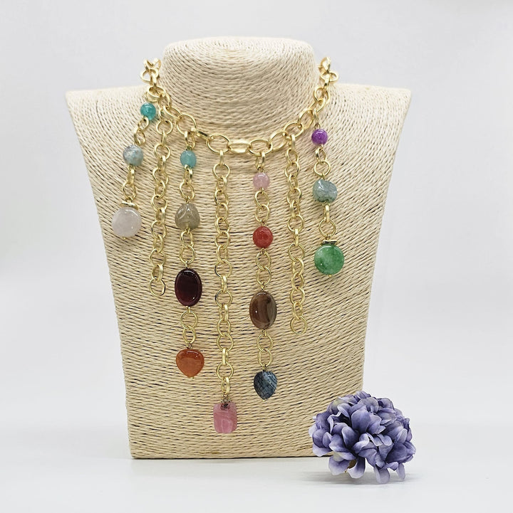 Elevate your style with this Turkish Multi-Layered Chain Necklace featuring an array of vibrant semiprecious stones. Each layer showcases unique colors that add depth and elegance, making it a perfect statement piece for any outfit. Crafted to captivate, this necklace blends traditional charm with modern flair, enhancing your look with a touch of timeless beauty.