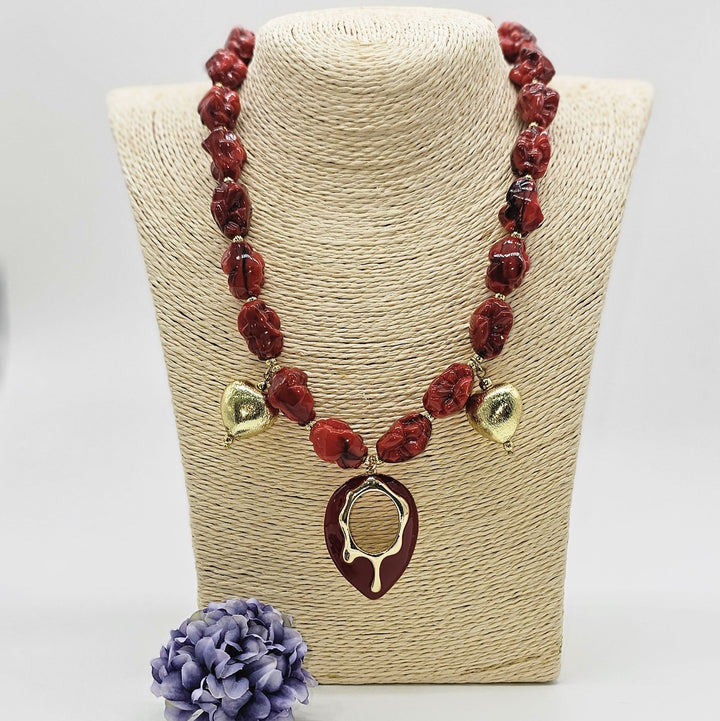Elevate your style with this Turkish Red Necklace, adorned with stunning semiprecious red stones. Its vibrant hues add a bold touch to any outfit, perfect for making a memorable impression. Crafted to combine elegance and unique charm, this necklace enhances your look with a rich, captivating glow. Ideal for both special occasions and everyday wear, it’s a striking accessory that invites compliments wherever you go. Embrace timeless beauty with a piece that reflects your confident, vibrant spirit.