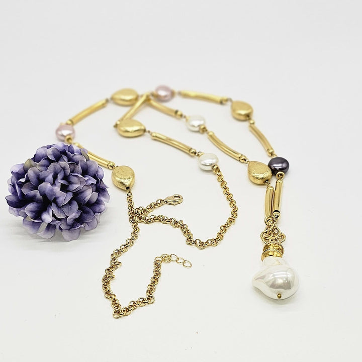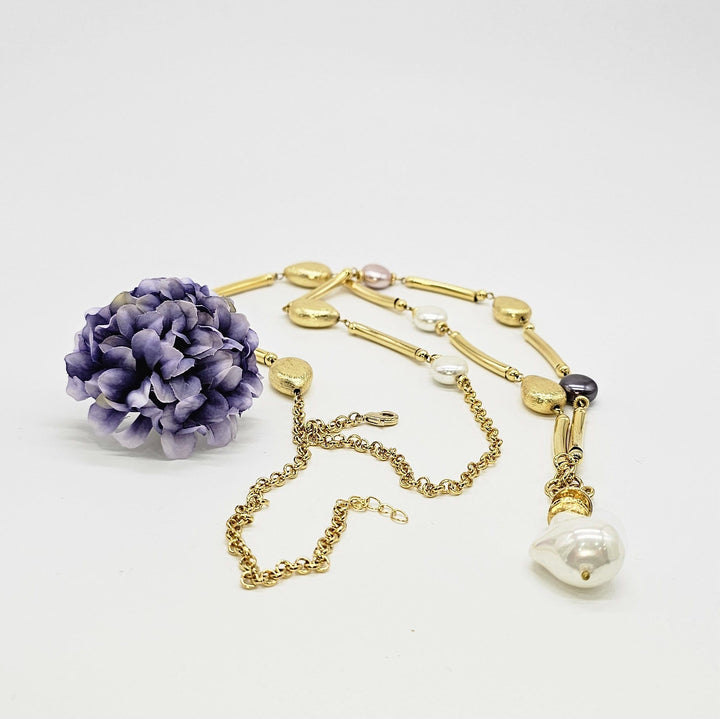 Elevate your style with the Turkish White Pearl Pendant Necklace, beautifully gold-plated and adorned with delicate pink and purple beads. This elegant piece adds a touch of sophistication and subtle color, perfect for enhancing any outfit with a graceful shimmer. Its unique design blends classic pearls with vibrant accents, making it a standout accessory for both everyday wear and special occasions.